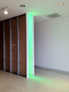 And I think that Nauman and Wheeler get my mania. Wheeler insisted on painting the walls white before putting up his pieces. Nauman challenges the normal and comfortable. Both are creating an immersive, eye-manipulative environment. There’s exuberance in this manipulation of light and space that has universal appeal because it’s not about what you see, necessarily, but how you feel. How can light transform space? Its simplicity is intimidating.