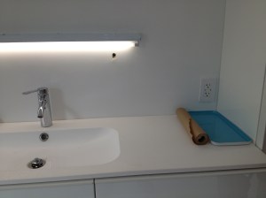 • We used fluorescent lights behind the mirror, it provided a very inexpensive way to light the bathroom